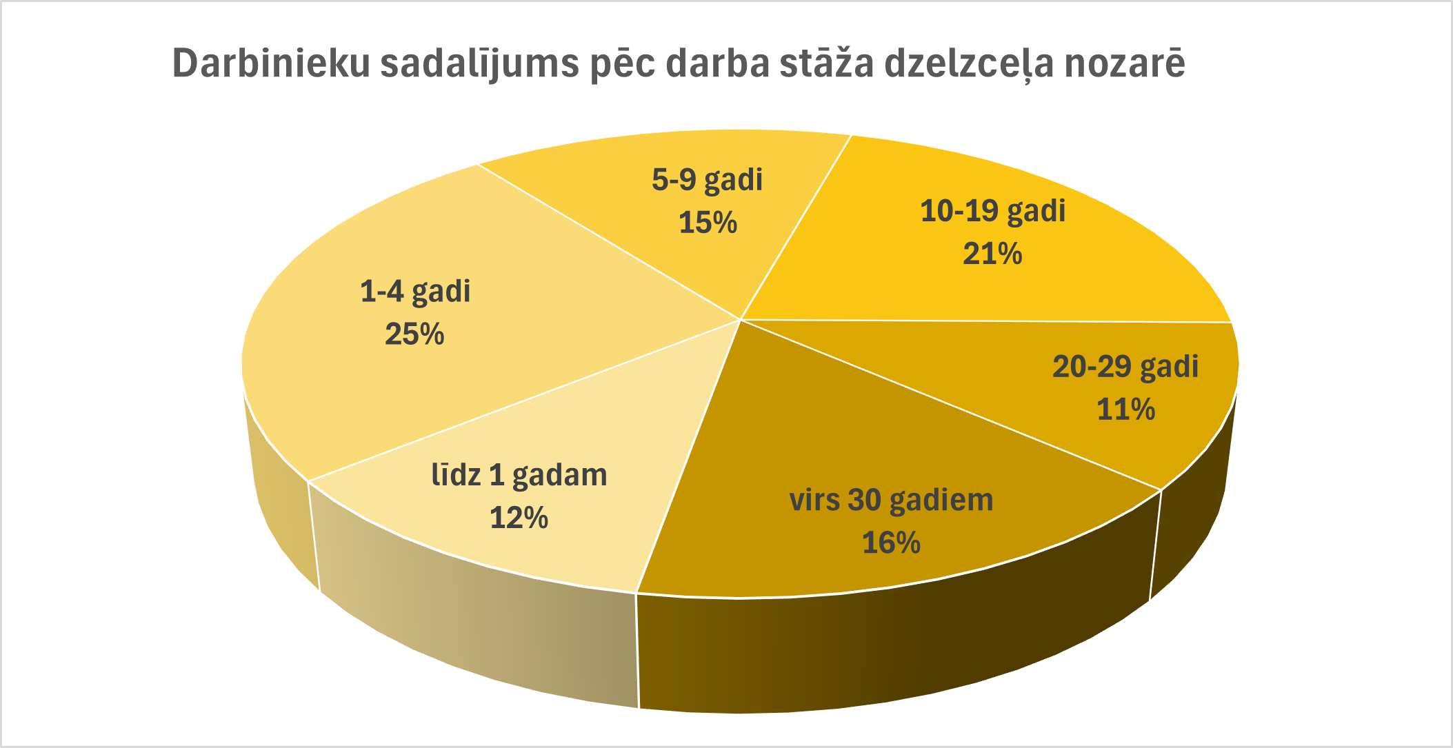 Darbinieku sadalījums grupās pēc darba stāža dzelzceļa nozarē