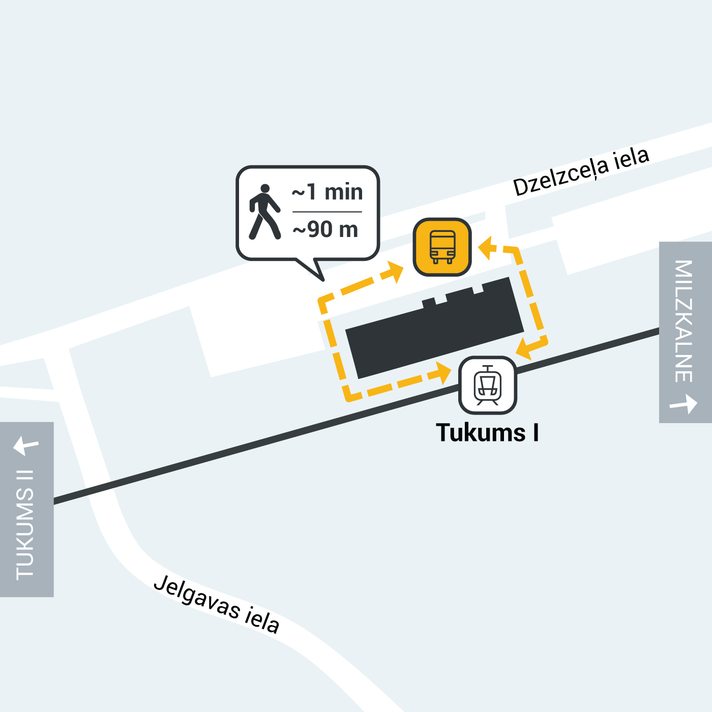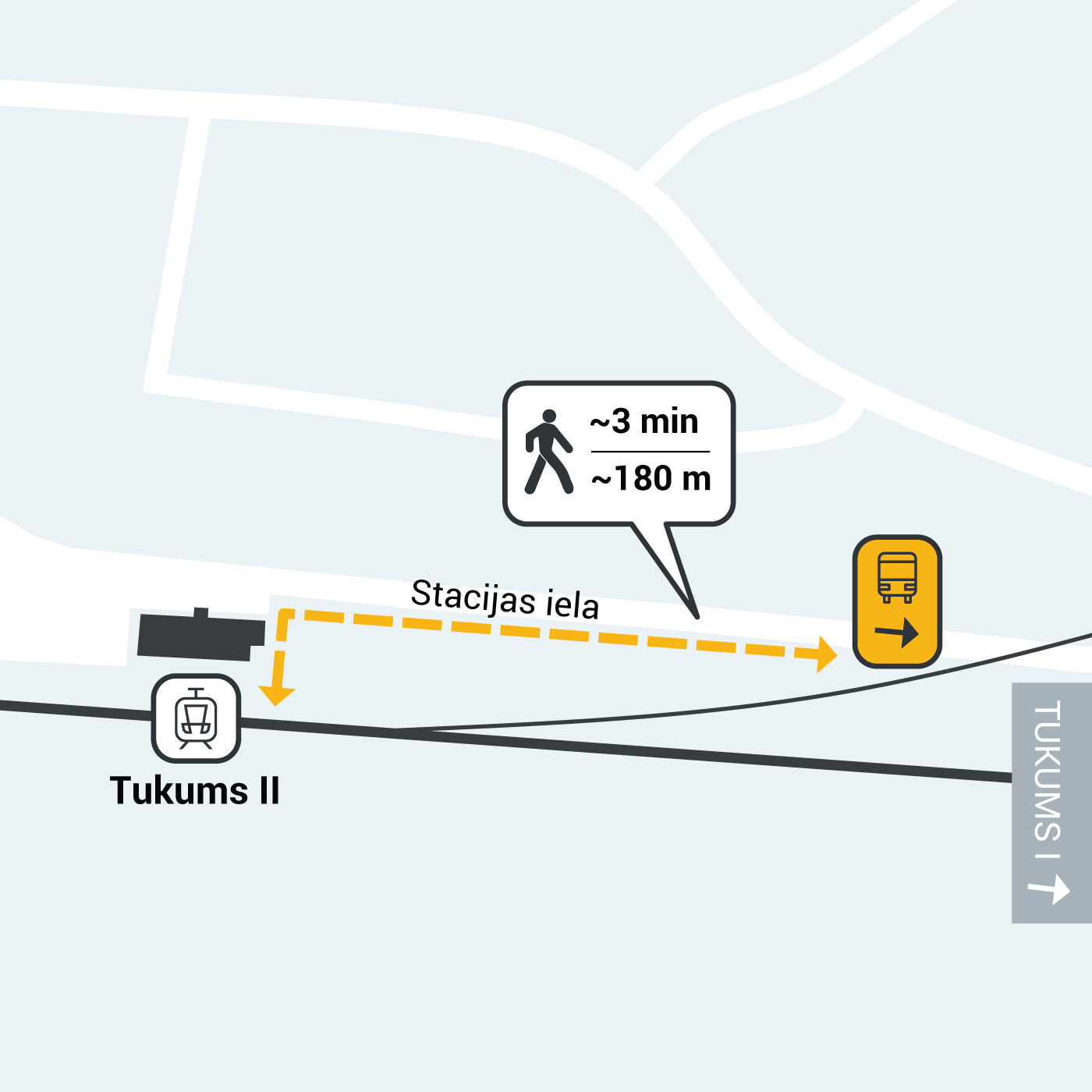 - vilcienus maršrutā Rīga–Tukums I un iespēju turpināt ceļu ar autobusu līdz pieturai Tukums II, kas kursēs reizi stundā;