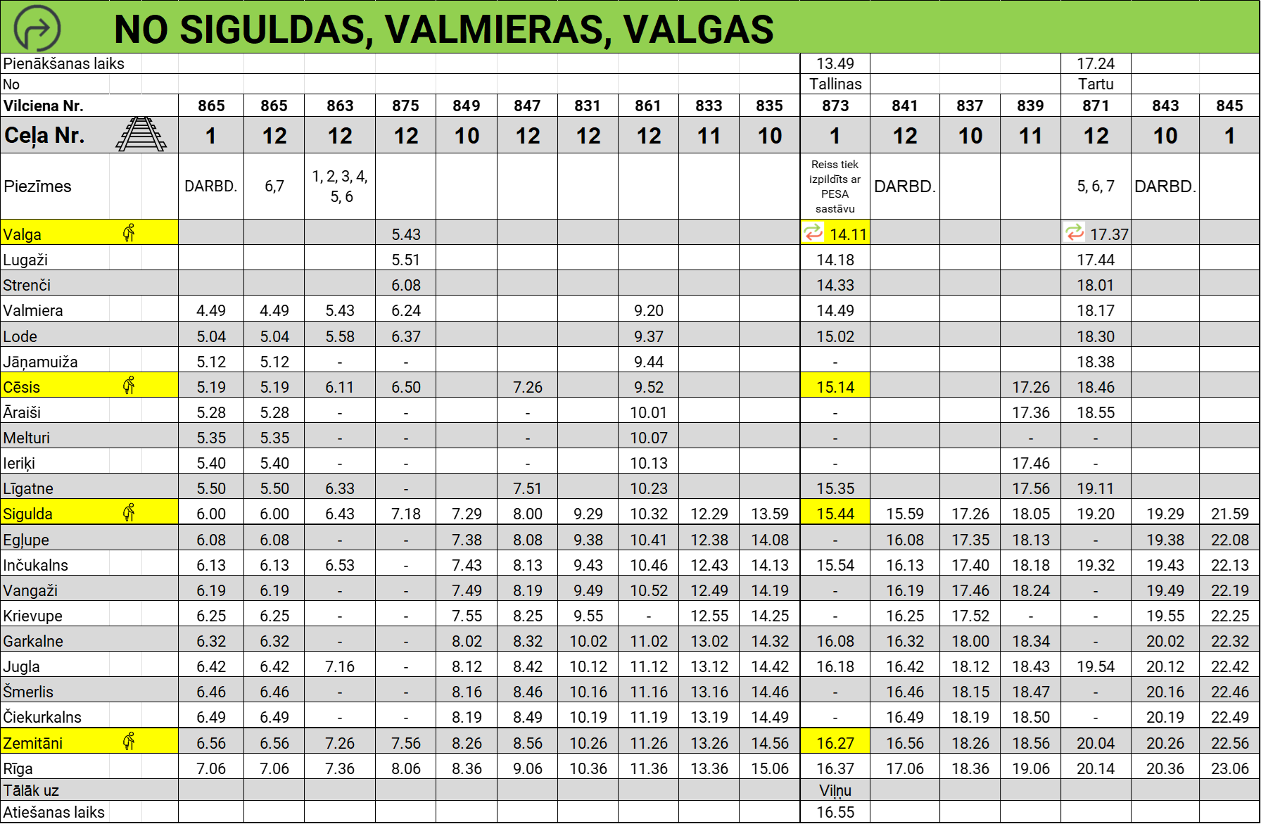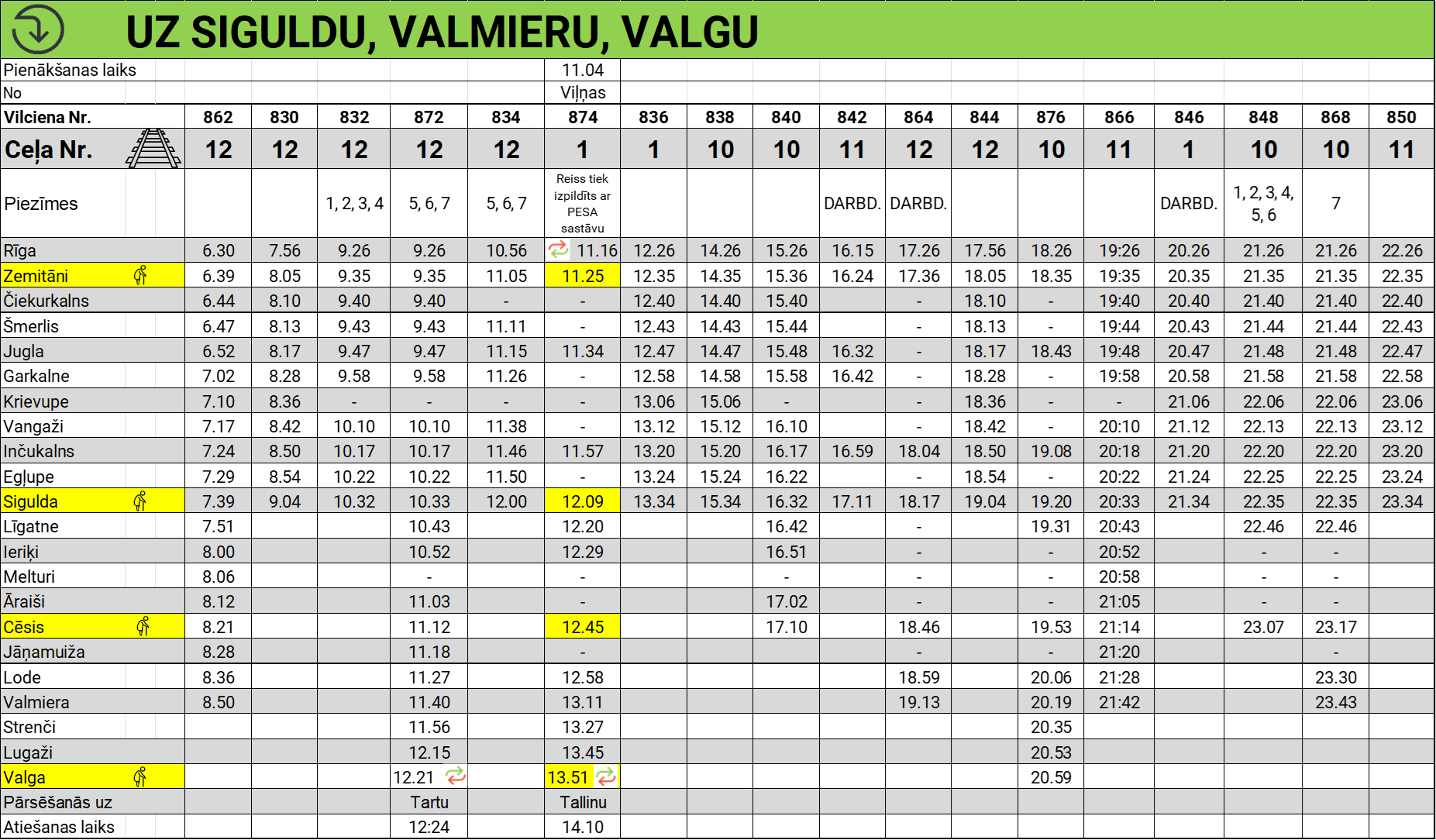 | ⬅️ Indra/Zilupe/Gulbene/Aizkraukle–Rīga (.pdf) | From November 21 | Changes in Aizkraukle direction timetables (.pdf; opens in new tab) |