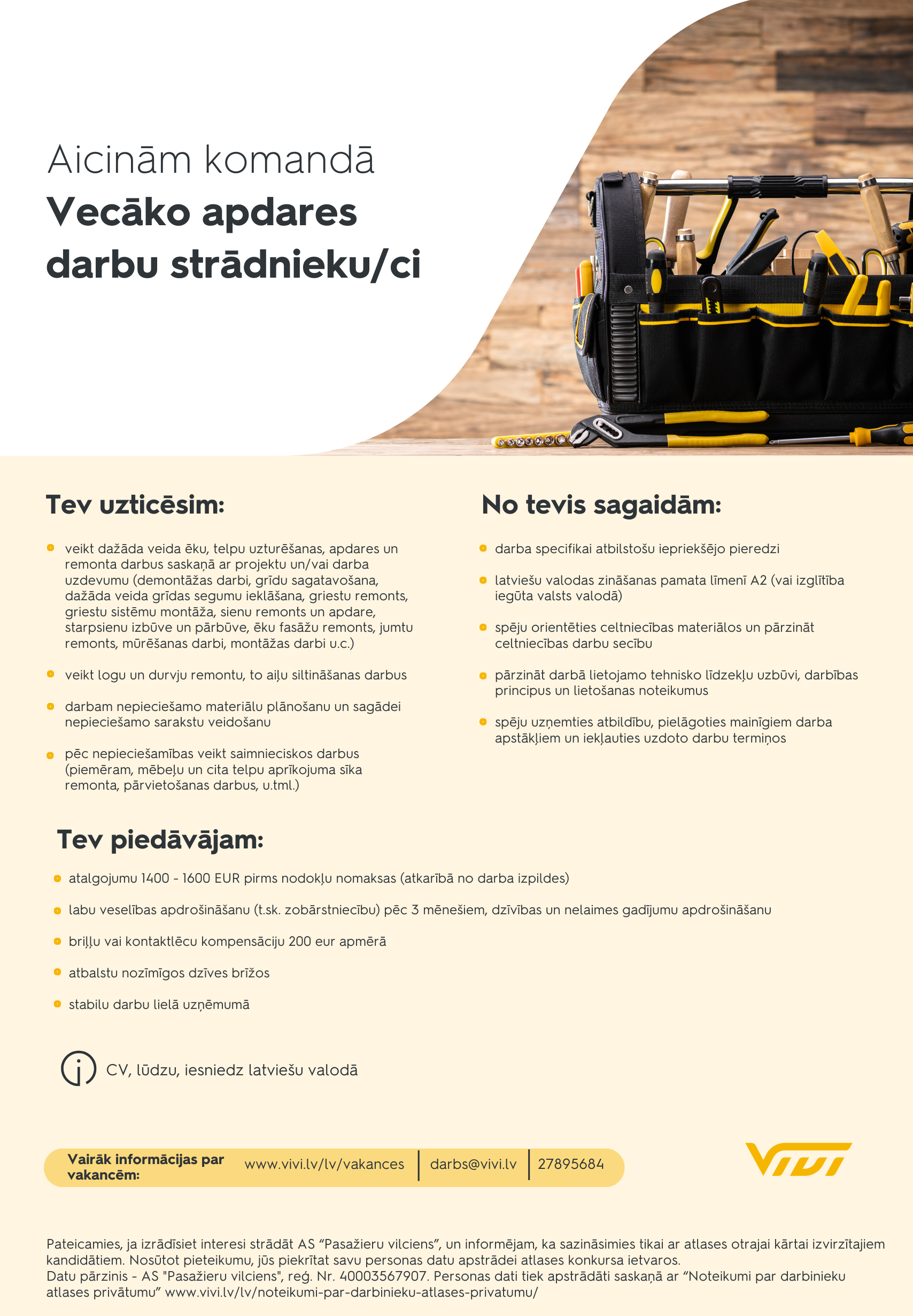Lūdzam vakancei pieteikties šeit līdz 2025. gada 21. oktobrim.